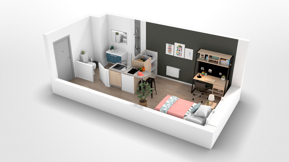 Explore the Marseille residence and its bedrooms as if you are there! Specially designed for student rental, your future accommodation is fully furnished. Whether you choose to live in a studio or shared apartment, you will enjoy many different services included in your rent. You will also be in the city centre, close to schools.