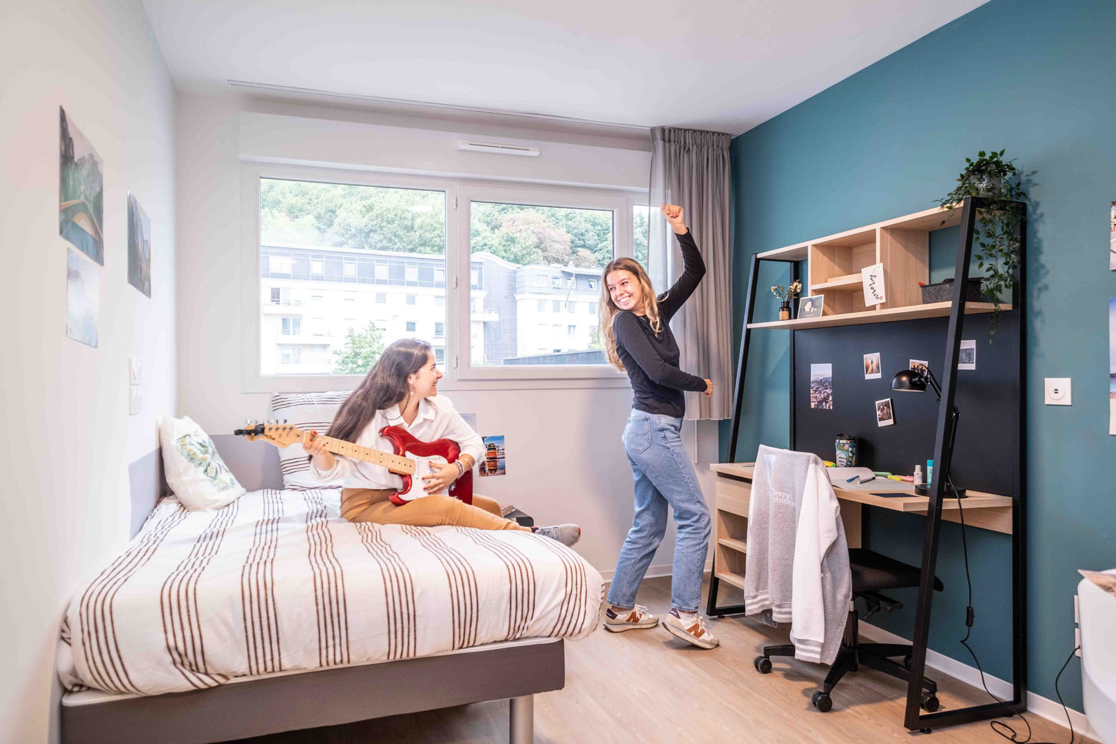 Explore the Rouen residence and its bedrooms as if you are there! Specially designed for student rental, your future accommodation is fully furnished. Whether you choose to live in a studio or shared apartment, you will enjoy many different services included in your rent. You will also be close to the city center and univertisty campuses of Rouen thanks to public transport.