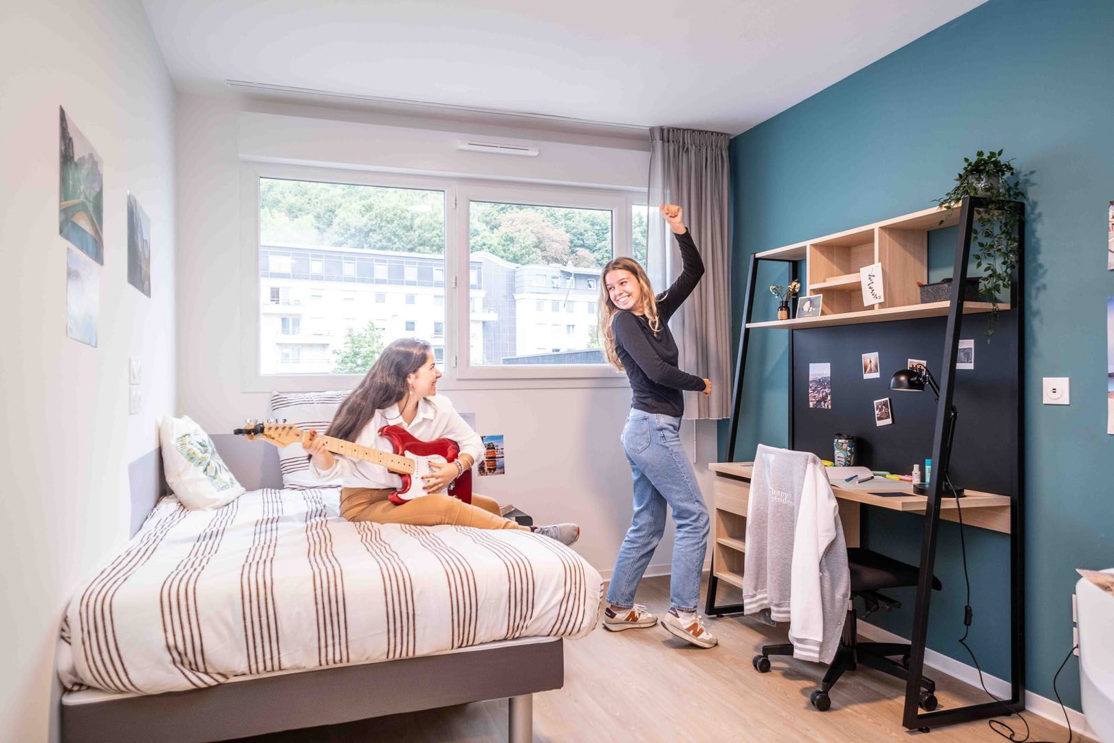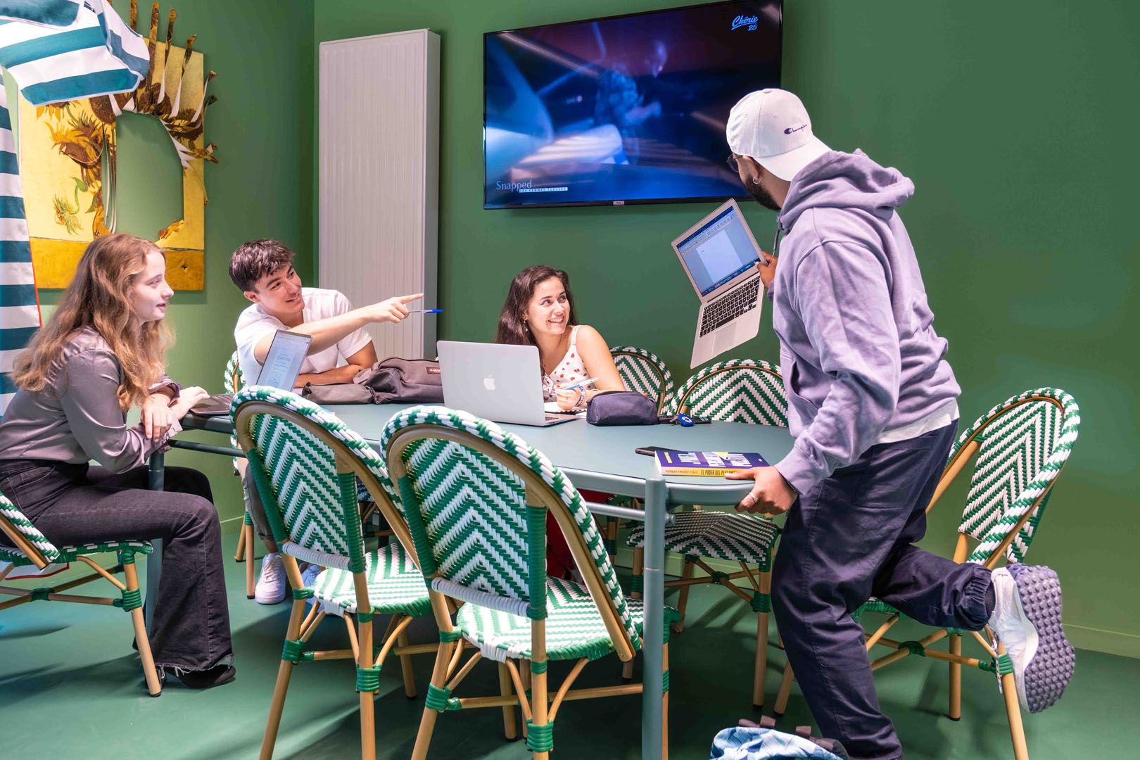 KLEY Rouen, c'est un coliving de 800m² d’espaces de vie intérieurs et extérieurs, pour tous les goûts et tous les résidents. Concrètement ? C’est un ciné, un baby-foot, un coin lounge, une cuisine toute équipée, des espaces de travail, un terrain de pétanque et un ping-pong. Et tout ça en accès gratuit !