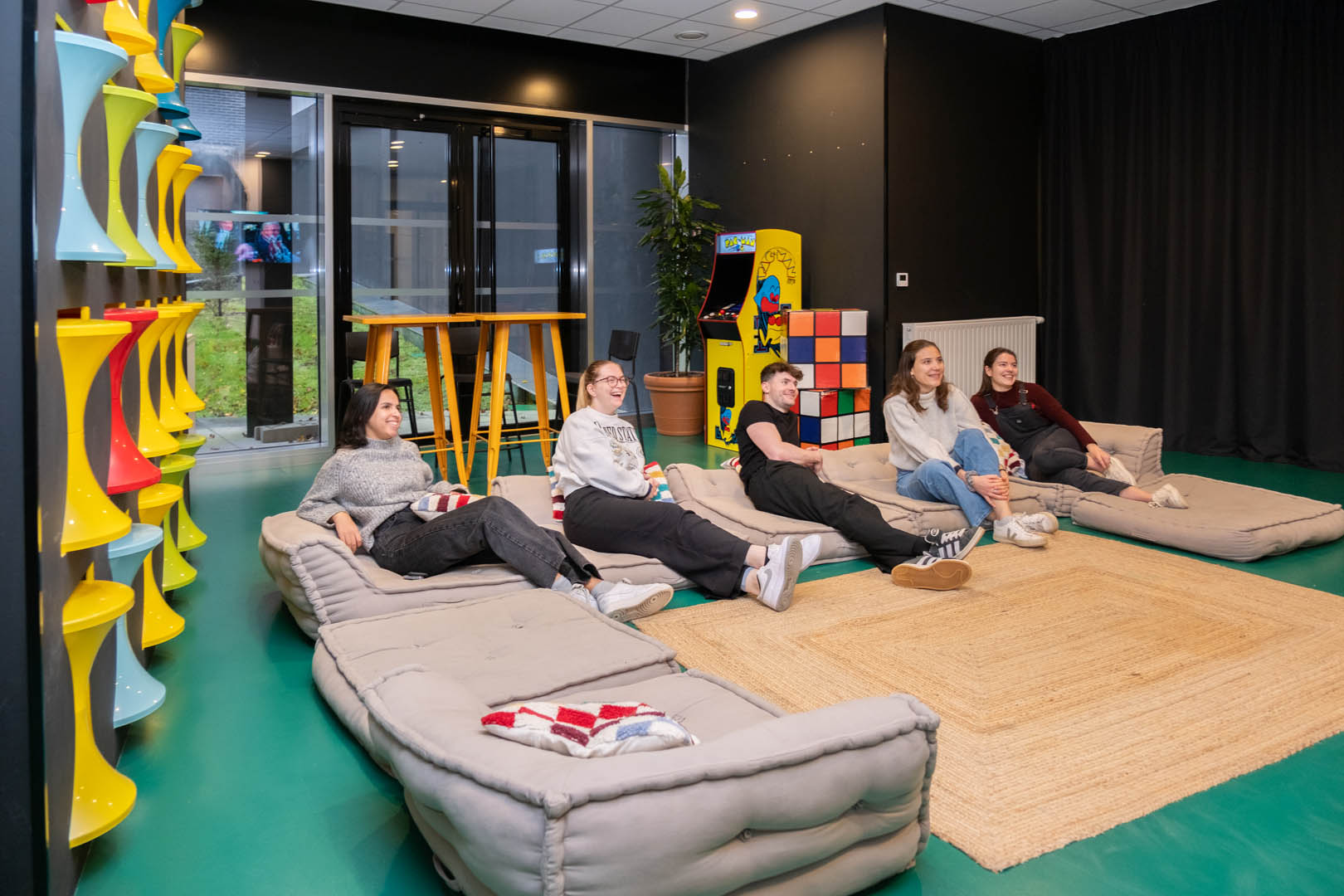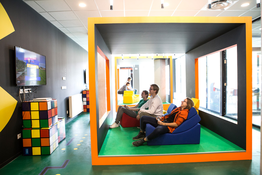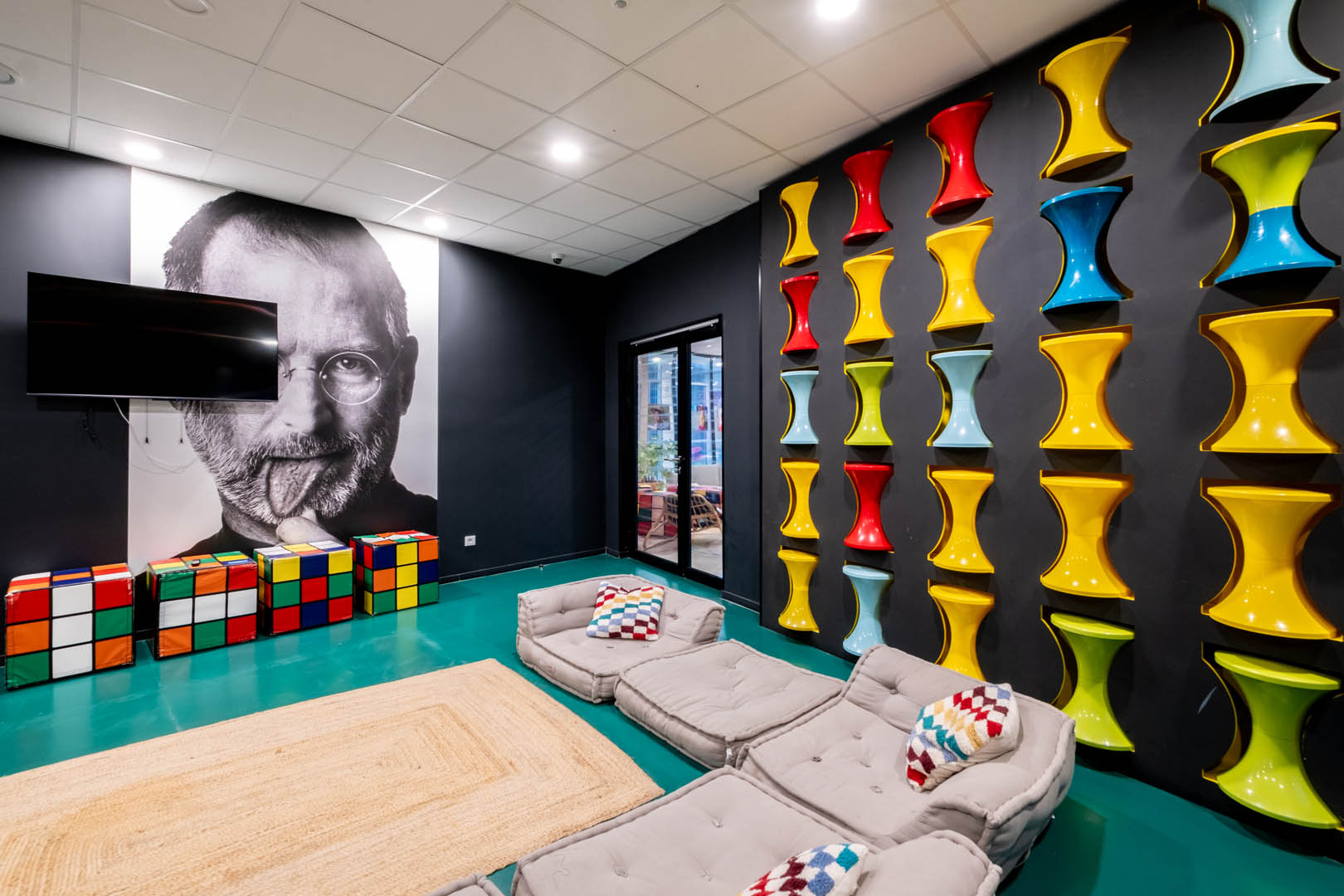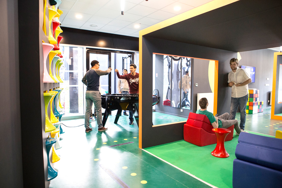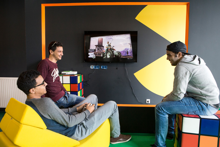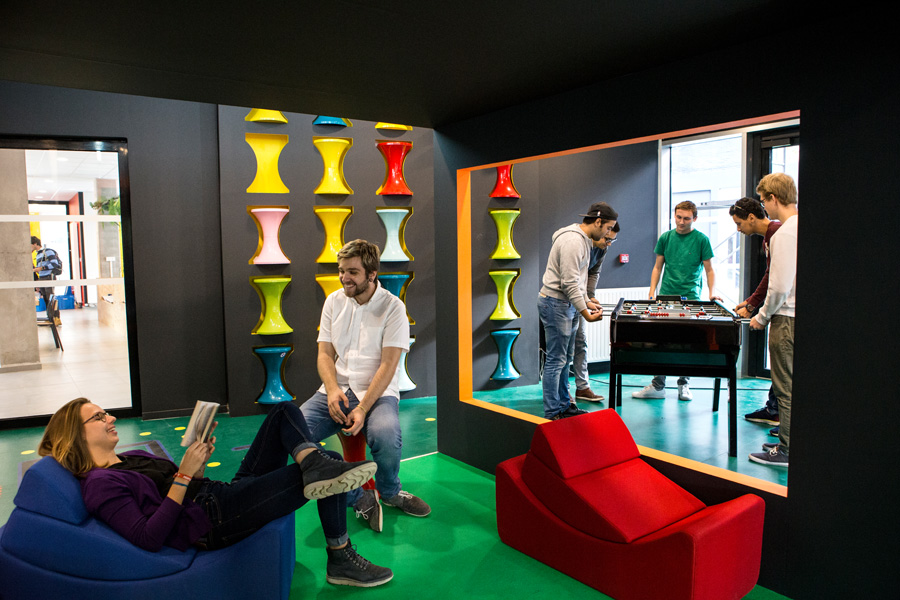 KLEY Saclay, c'est un coliving de 800m² d’espaces intérieurs et extérieurs pour tous les goûts et tous les résidents. Concrètement ? C’est un ciné, un patio avec toboggan, un baby-foot, un coin lounge, une cuisine toute équipée, et même une terrasse de 200m² pour lézarder au soleil. Et tout ça en accès gratuit !