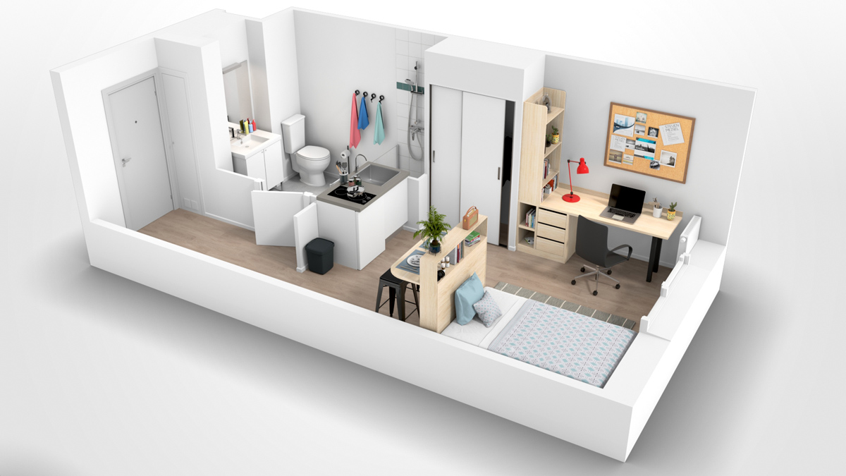 Découvrez la résidence étudiante de Caen et ses chambres comme si vous y étiez ! Visitez la résidence KLEY sans quitter votre canapé à travers une visite virtuelle de ses espaces de vie.