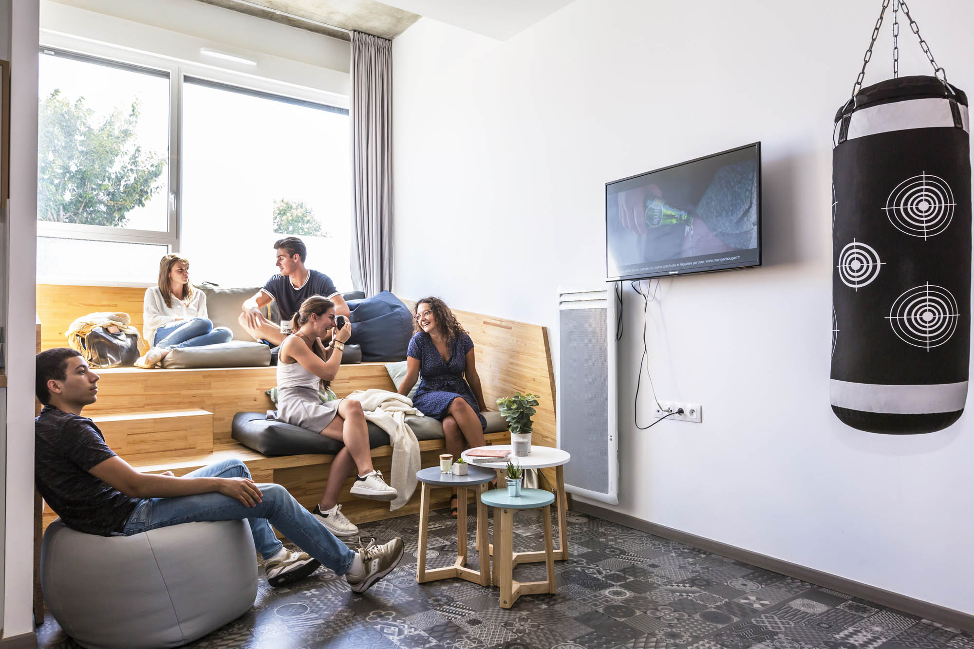 Adepte de la vie en solo dans une résidence étudiante caennaise au design vibrant et stimulant inspiré de l’univers rétrogaming ? Optez pour l’un de nos confortables Kocoons. Vous préférez la colocation pour vous sentir comme à la Kasa ? Nos logements jeunes à Caen accueillent jusqu’à 5 étudiants. De 15 à 120m², c’est vous qui choisissez ! Dans tous les cas, profitez d’espaces de vie optimisés aussi conviviaux que fonctionnels grâce à ses nombreux rangements. Et en plus d’être neufs et idéalement situés, nos logements étudiants bénéficient tous d’une isolation phonique au top et de grandes fenêtres pour un max de lumière naturelle.