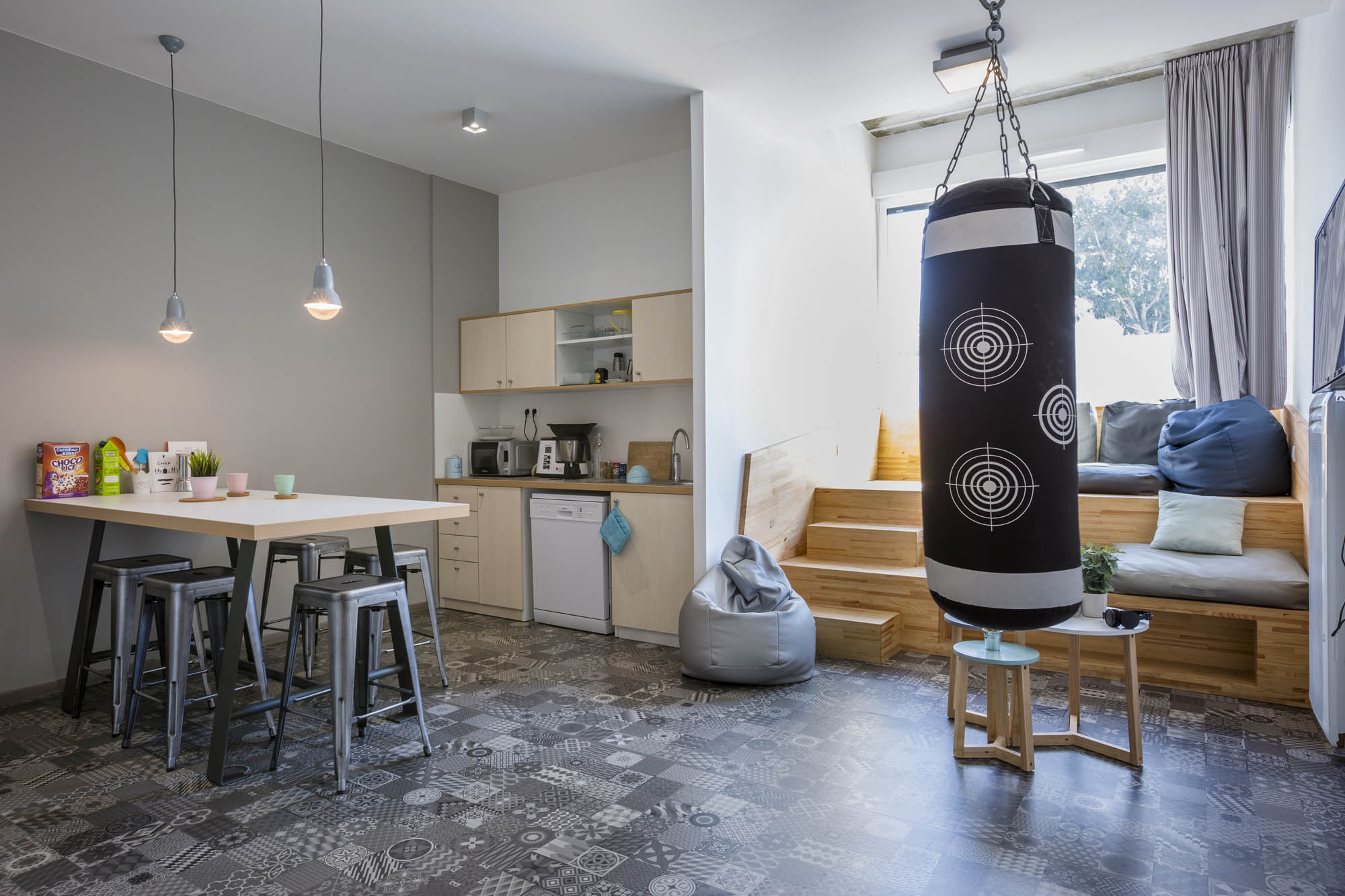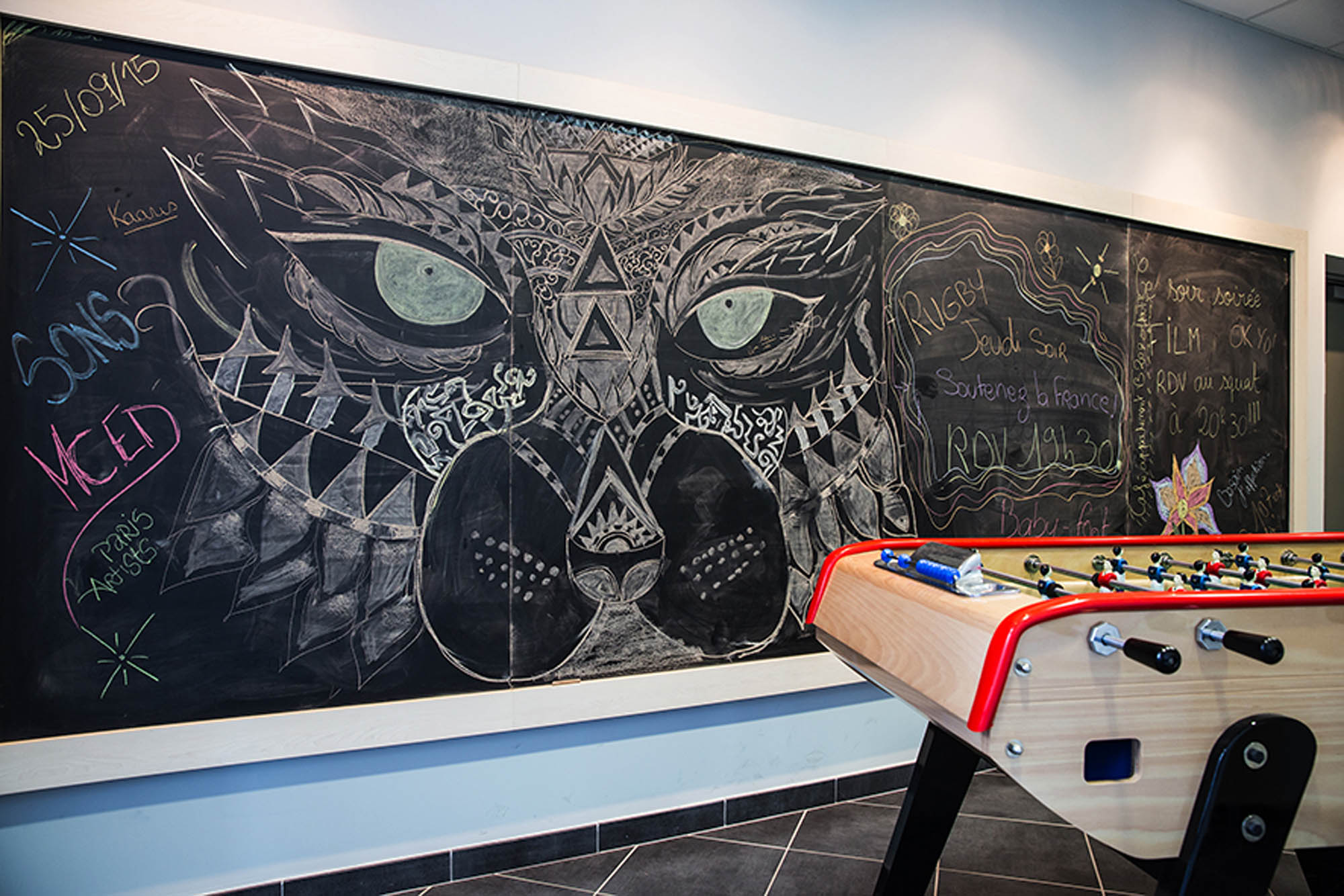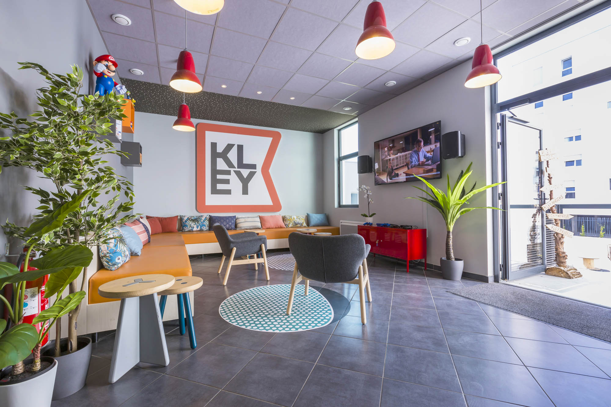 KLEY Caen, c'est un coliving de 1500m² d’espaces de vie intérieurs et extérieurs, pour tous les goûts et tous les résidents. Concrètement ? C’est un ciné, un baby-foot, un coin lounge, une cuisine toute équipée, des espaces de travail, un terrain de pétanque, un ping-pong et même un panier de basket. Et tout ça en accès gratuit !
