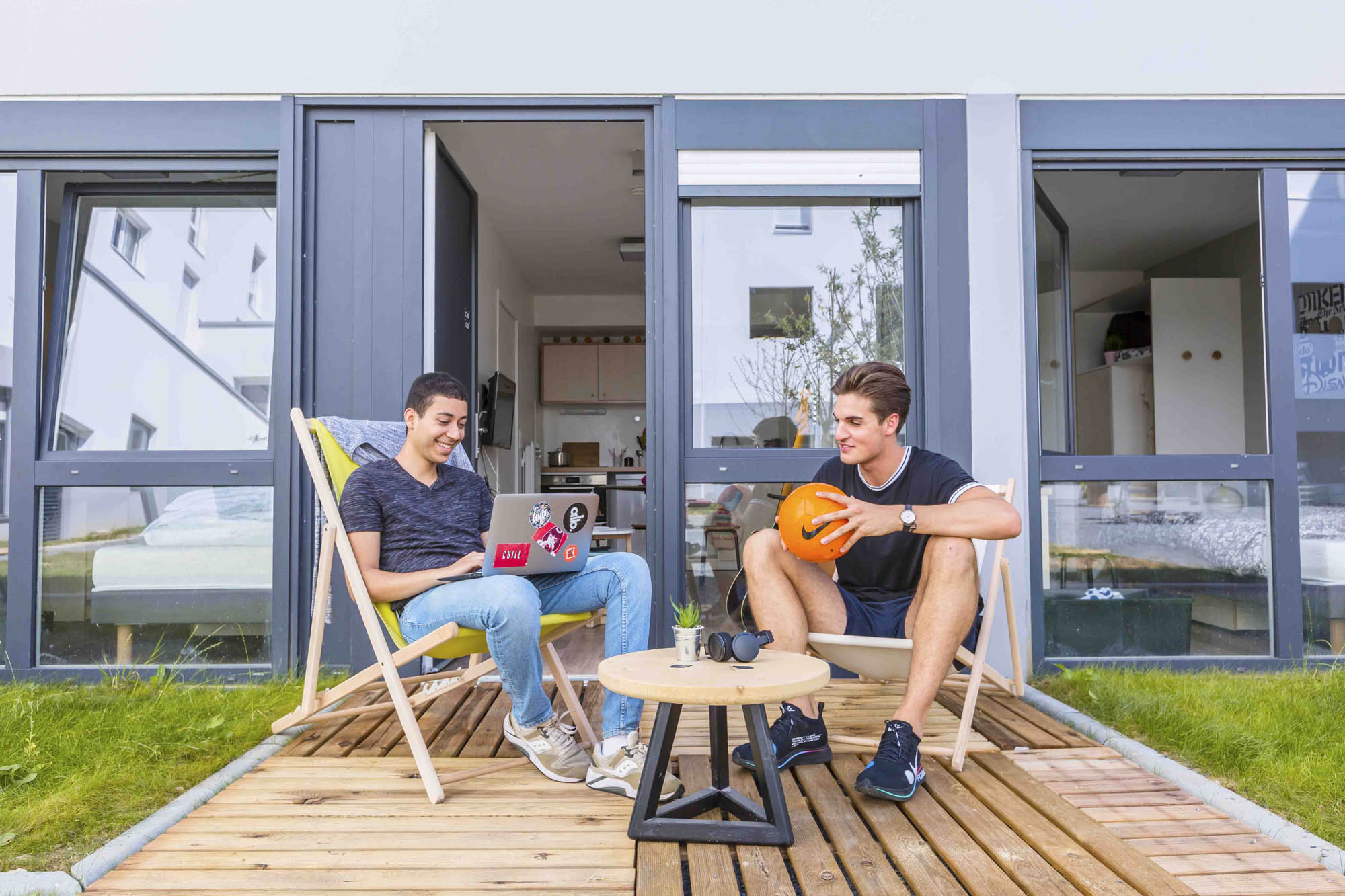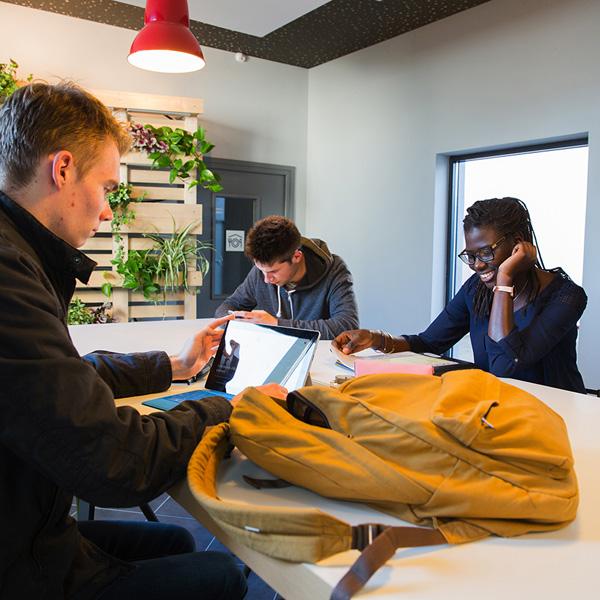 Seul ou en équipe, dans notre résidence étudiante KLEY Caen, vivez le coworking à la carte ! Organisez des séances de travail sous le soleil normand du patio, ou bien dans le calme du lab de la résidence étudiante. KLEY Caen, c’est 1500m² d’espaces de vie intérieurs et extérieurs, pour tous les goûts et tous les étudiants. Ciné, baby-foot, coin lounge, cuisine équipée, terrain de pétanque, ping-pong et panier de basket sont en accès gratuit pour les résidents !