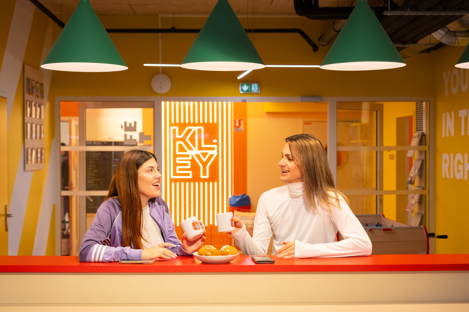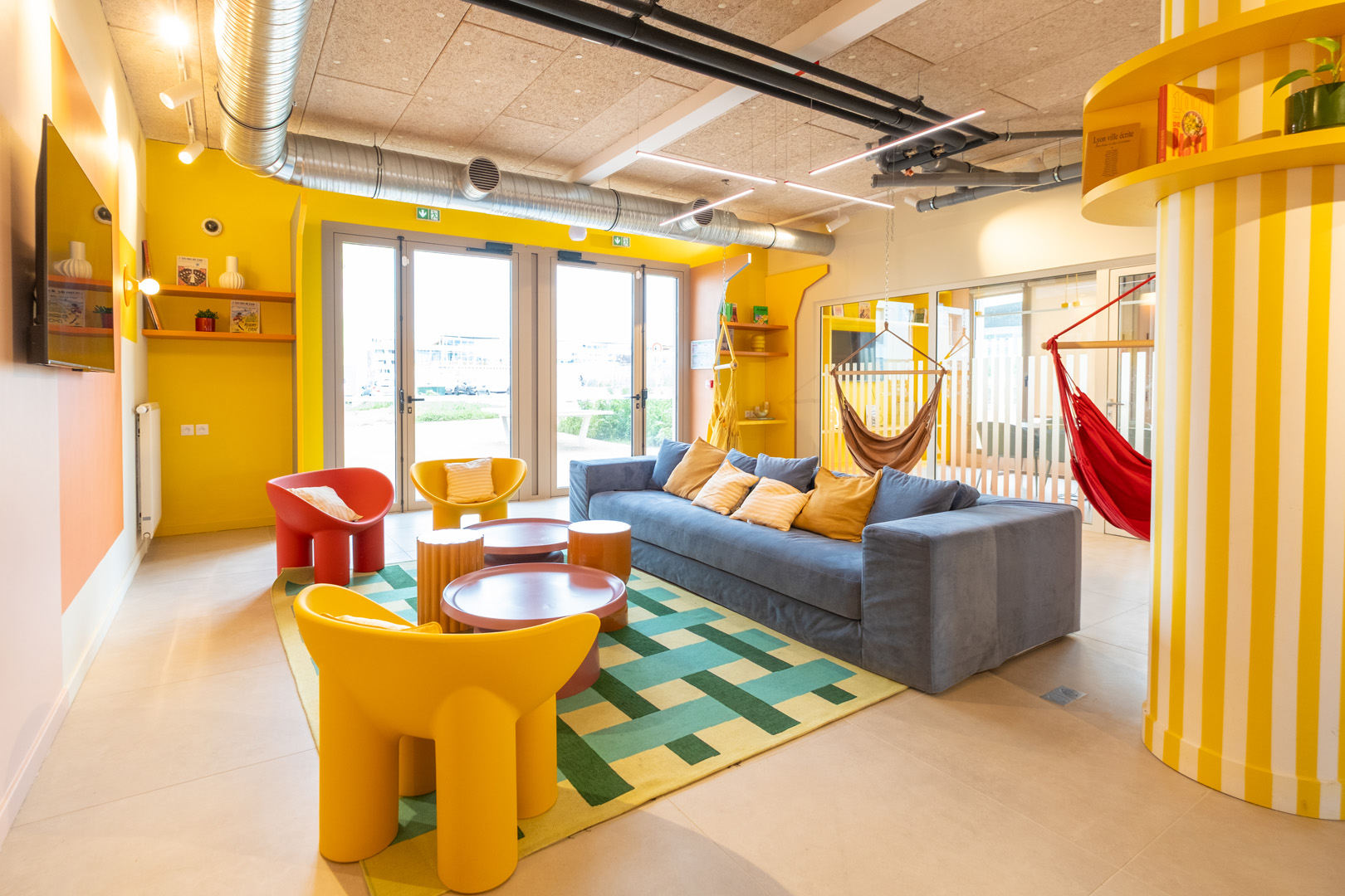 KLEY Lyon Bron, c'est un coliving de 1715m² d’espaces de vie intérieurs et extérieurs, pour tous les goûts et tous les résidents. Concrètement ? C’est un coin lounge, une cuisine toute équipée, un espace de travail et de pétanque, un patio et même un rooftop pour s'aérer. Et tout ça en accès gratuit !
