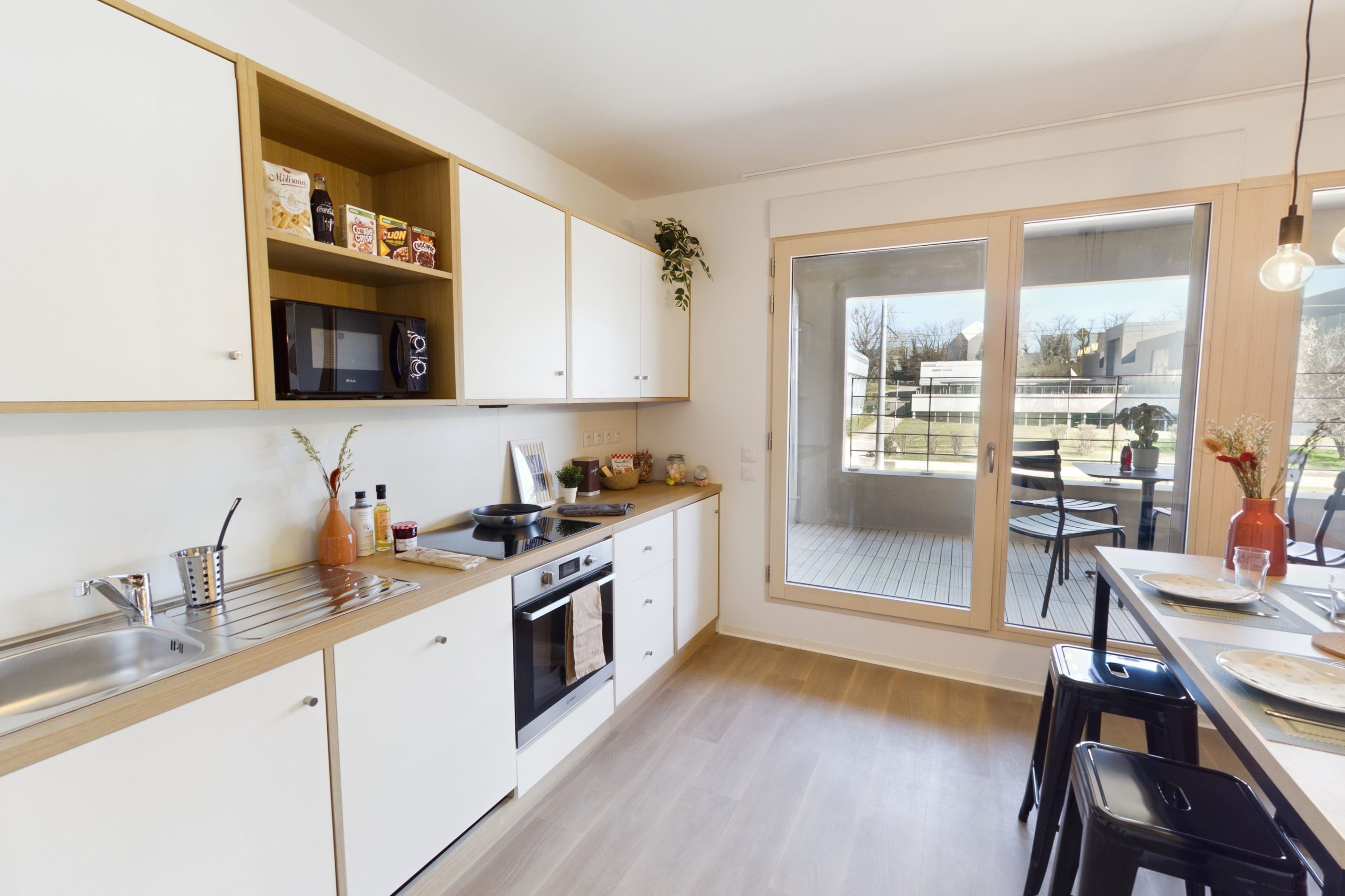 Si vous optez pour une location étudiante avec cuisine aménagée, sachez que votre cuisine sera entièrement équipée avec des plaques de cuisson, un réfrigérateur, un micro-ondes et plusieurs rangements pour faciliter la préparation de vos repas. Quant à la salle de bain privative, elle comprend une douche moderne et des WC, vous assurant ainsi autonomie et intimité.