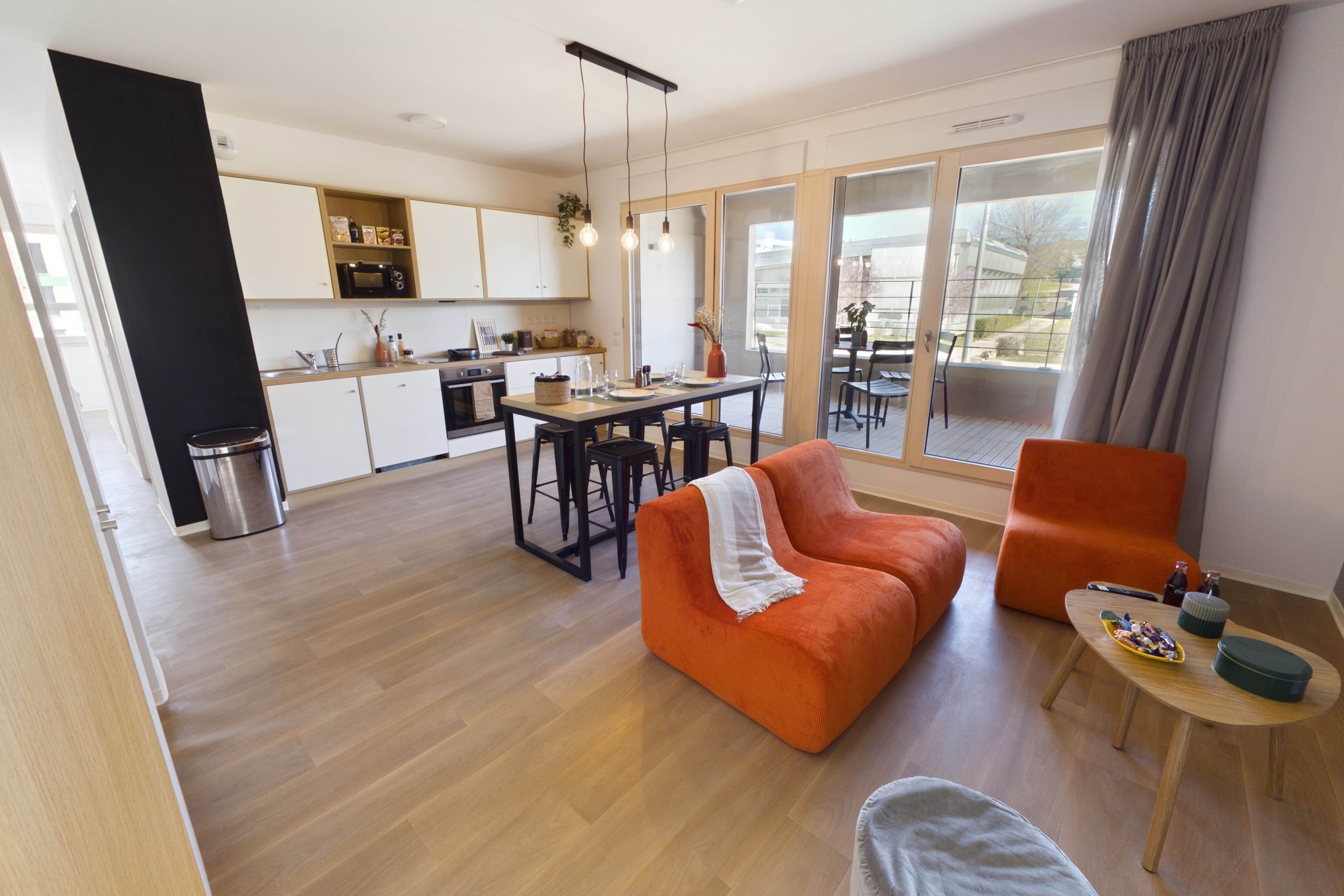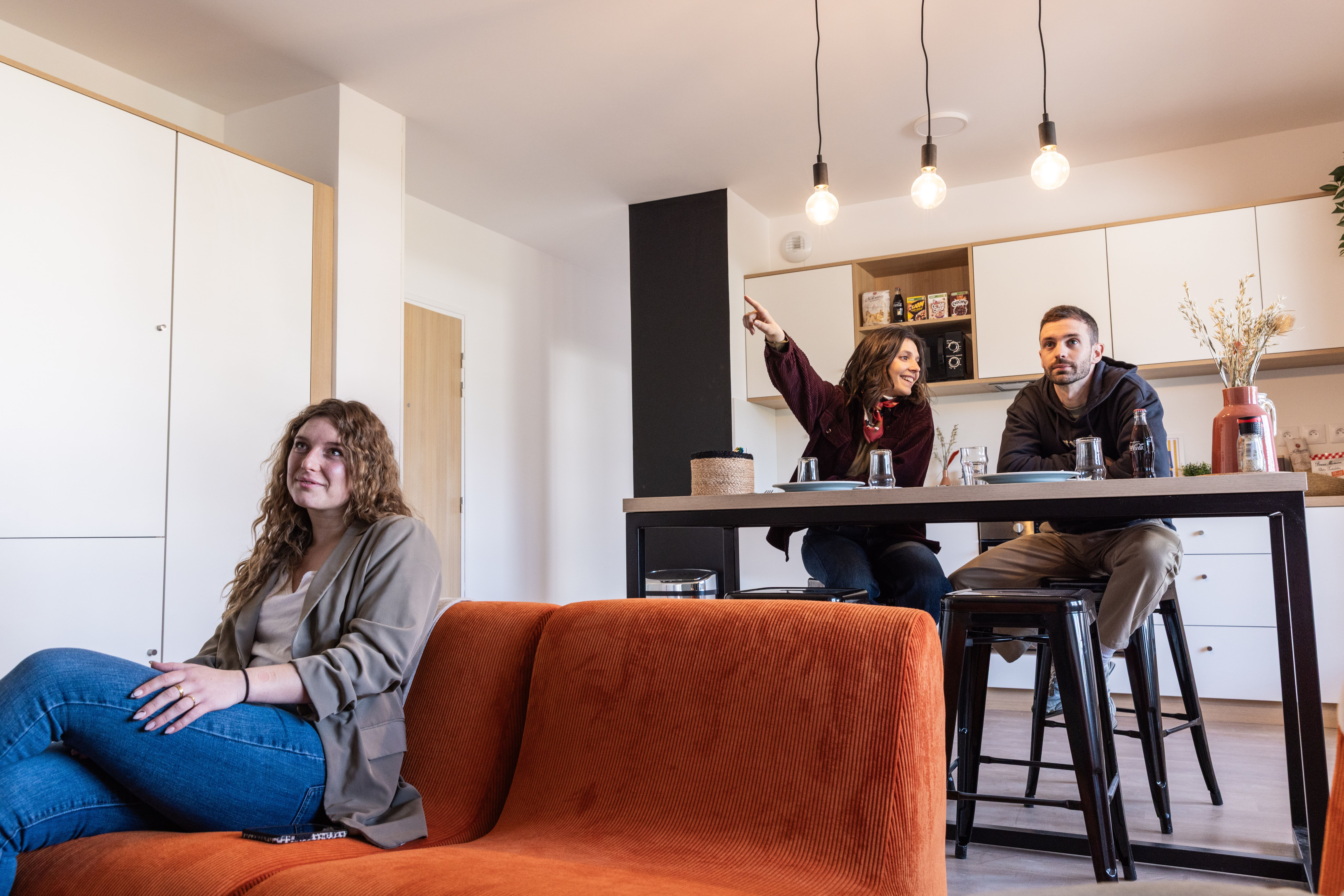Vous préférez la vie en communauté ? Notre résidence étudiante vous propose des appartements en colocation avec des espaces partagés mais aussi des chambres et salles de bain privatives.