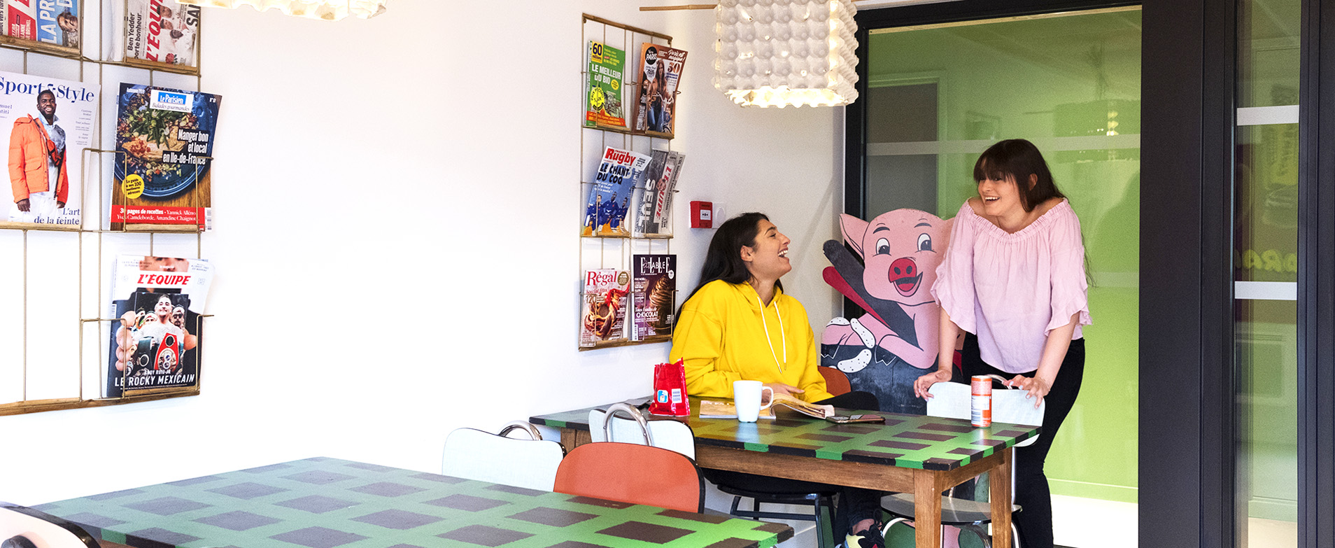 Profitez du lever du soleil pour vous ressourcer sur le rooftop de la résidence étudiante à Gennevilliers avant une séance intensive de révisions dans l’espace de coworking. Préparez-vous un bon repas en compagnie d’autres étudiants dans la cuisine partagée, avant de vous détendre en faisant une partie de Playstation dans l’espace lounge avec TV, ou en regardant un film dans la salle cinéma de la résidence étudiante parisienne. Pour votre linge, plus besoin de traverser tout Paris pour trouver une laverie. La résidence étudiante Paris-Gennevilliers dispose d’une buanderie accessible tous les jours, tout le temps et à tous les étudiants ! Vive la Happy Performance KLEY !