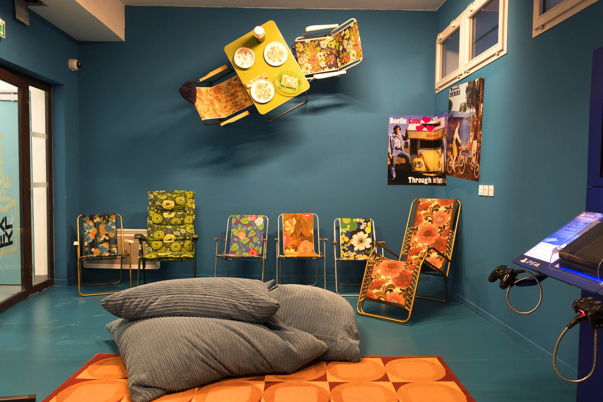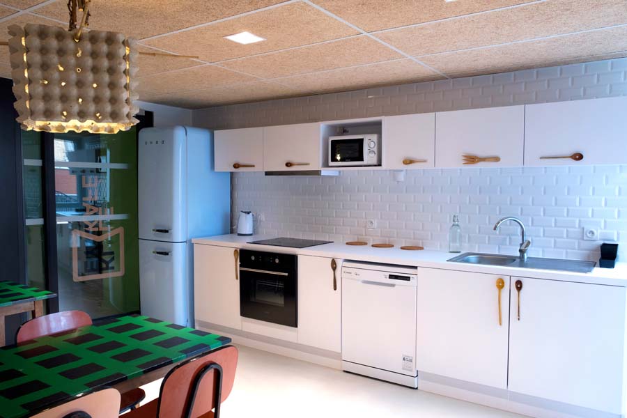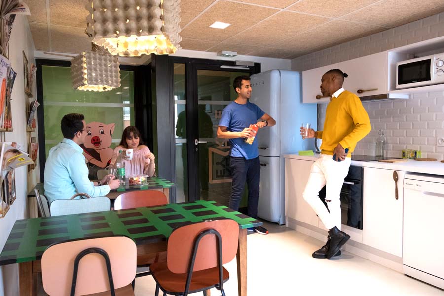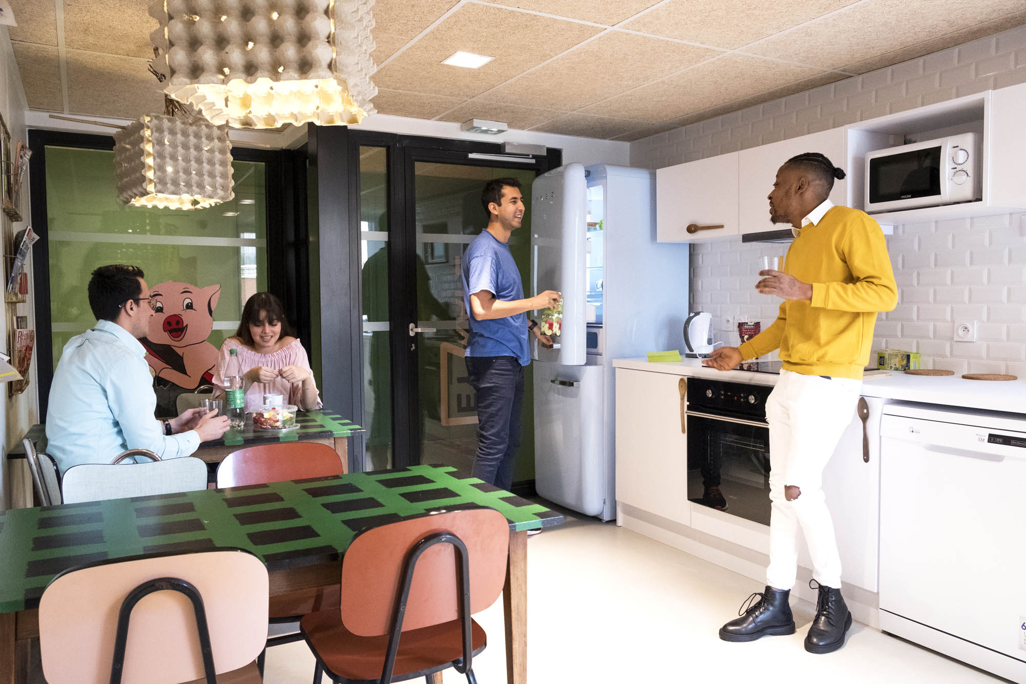 KLEY Gennevilliers, c'est un coliving de 250m² d’espaces de vie intérieurs et extérieurs, pour tous les goûts et tous les résidents. Concrètement ? C’est un petit ciné, un coin lounge, une cuisine toute équipée, un espace de travail, un patio et même un rooftop pour s'aérer. Et tout ça en accès gratuit ! Ça donne envie de faire des pauses, non ?