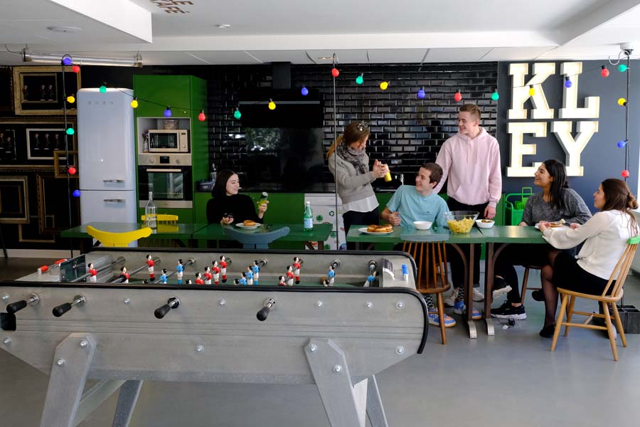 Études, rencontres étudiantes, événements, services et espaces partagés, c’est la composition unique de l’ADN de notre résidence étudiante internationale : un lieu de vie où les études riment avec partage et fun. Seul ou en équipe, chez KLEY, vivez le coworking étudiant à la carte ! Organisez des séances de travail au soleil dans le patio lorsqu’il fait beau ou plongez dans le calme absolu du Lab pour être à l’abri lorsqu’il pleut !